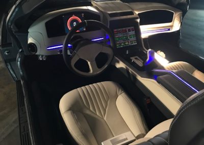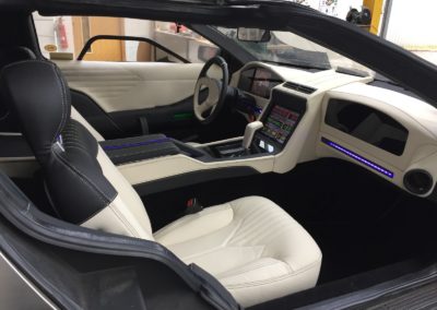 We were asked to bring the iconic DeLorean ‘Back to the Future’ for National Geographic Channel’s Supercar Megabuild show. Along with the show’s presenter, Boyzone’s Shane Lynch, we completely redesigned and transformed the interior. The seats and doors were trimmed in