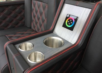 Our client wanted us to revamp a VIP Ferris Wheel gondola for the Winter Wonderland at London’s Hyde Park. We completely redesigned and fitted the interior with luxury leather heated seating, armrests, LED lighting with a touch control panel, USB charging points, champagne bottle coolers and glass holders. We also built in a Bluetooth speaker, twinkling starlight roof