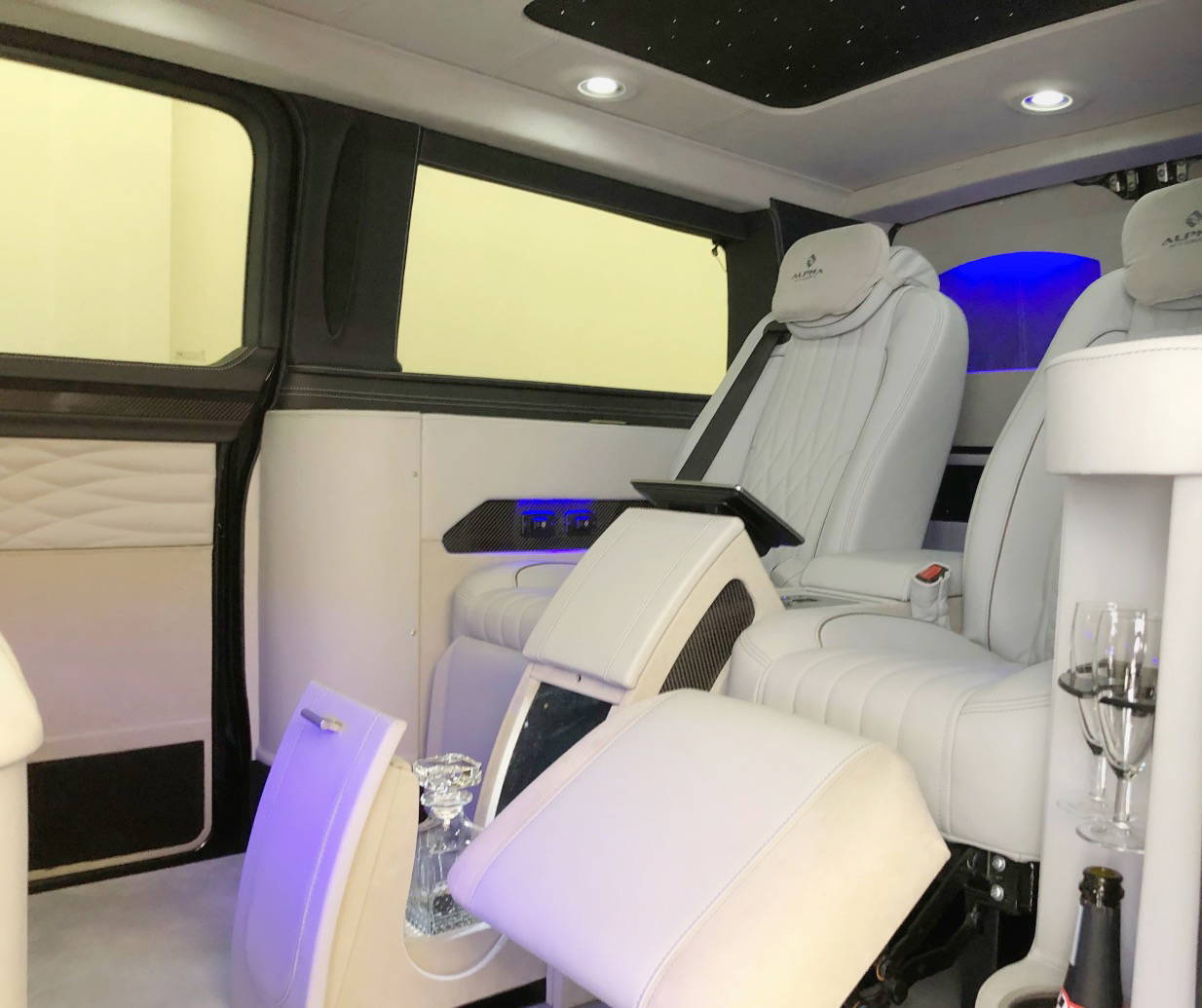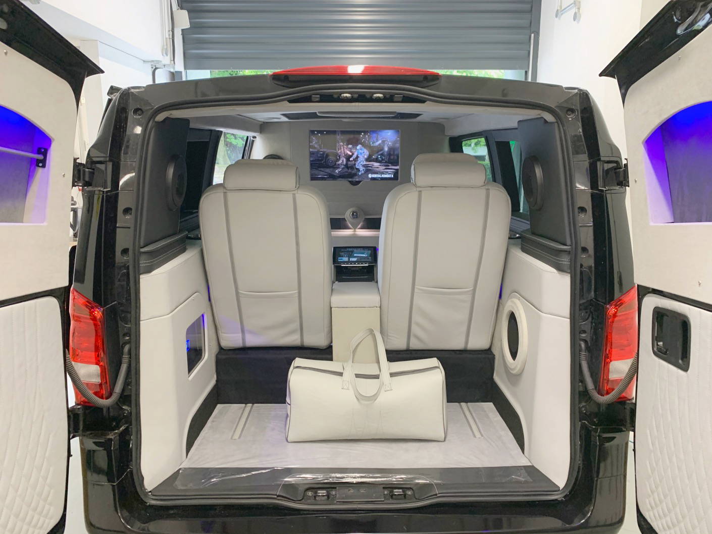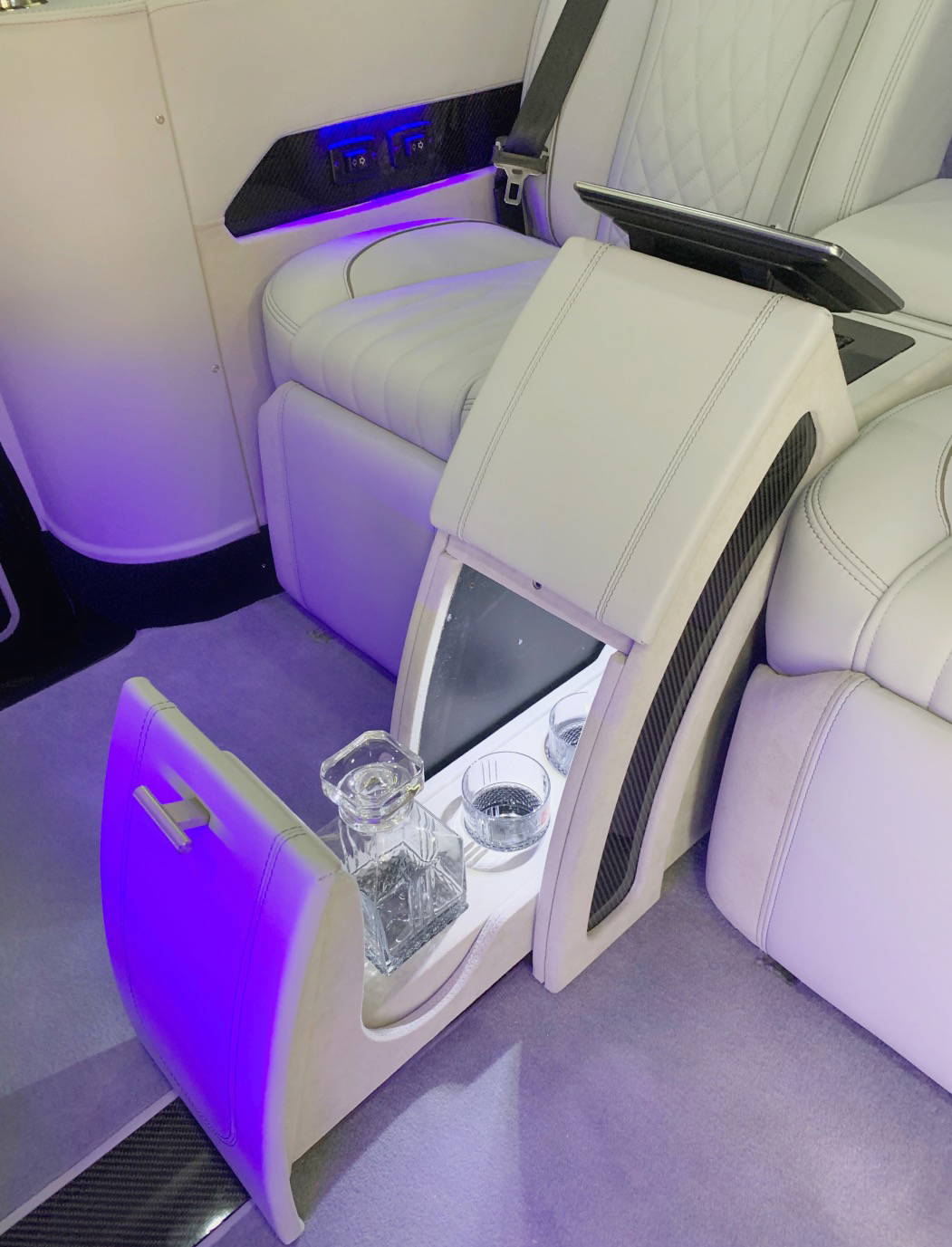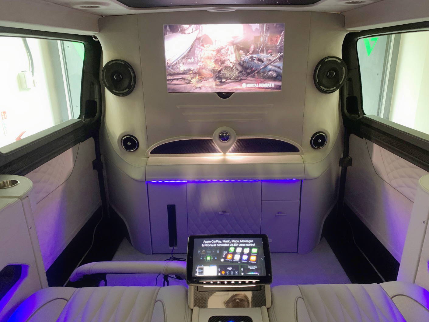Having enjoyed years of converting vans into party vehicles in Australia, Brett was ready for another challenge and decided to transform a Mercedes Vito into a luxury VIP vehicle. Choosing a Mercedes Vito panel van as the base vehicle, literally everything inside needed to be custom fabricated. Everything was done in house utilising Brett’s skills in woodwork, fibreglassing, metal work and trimming to create everything from scratch.