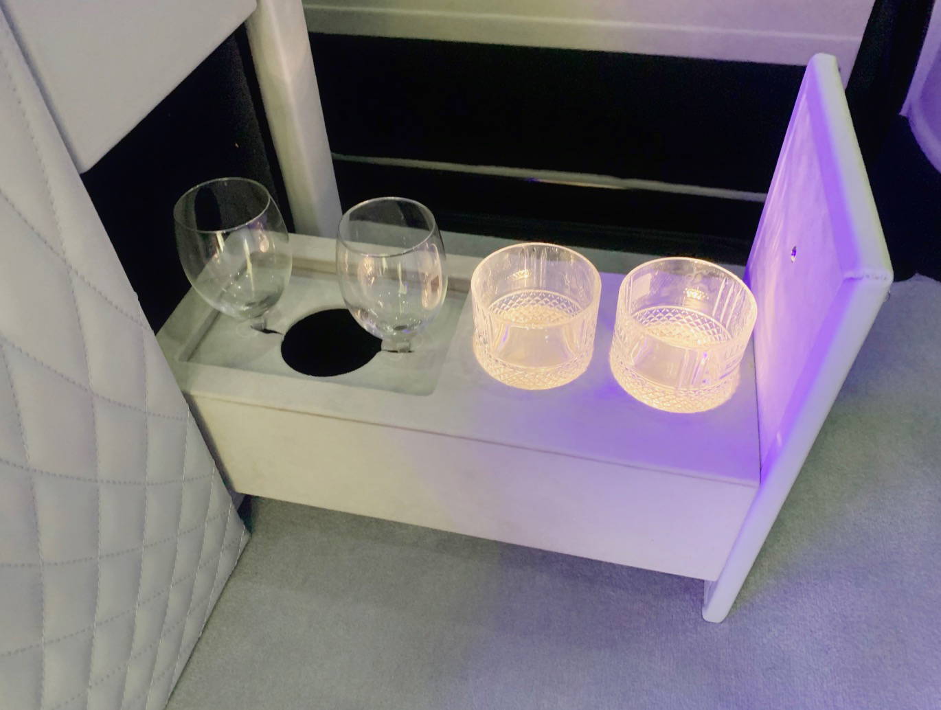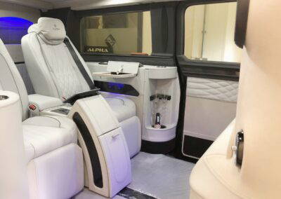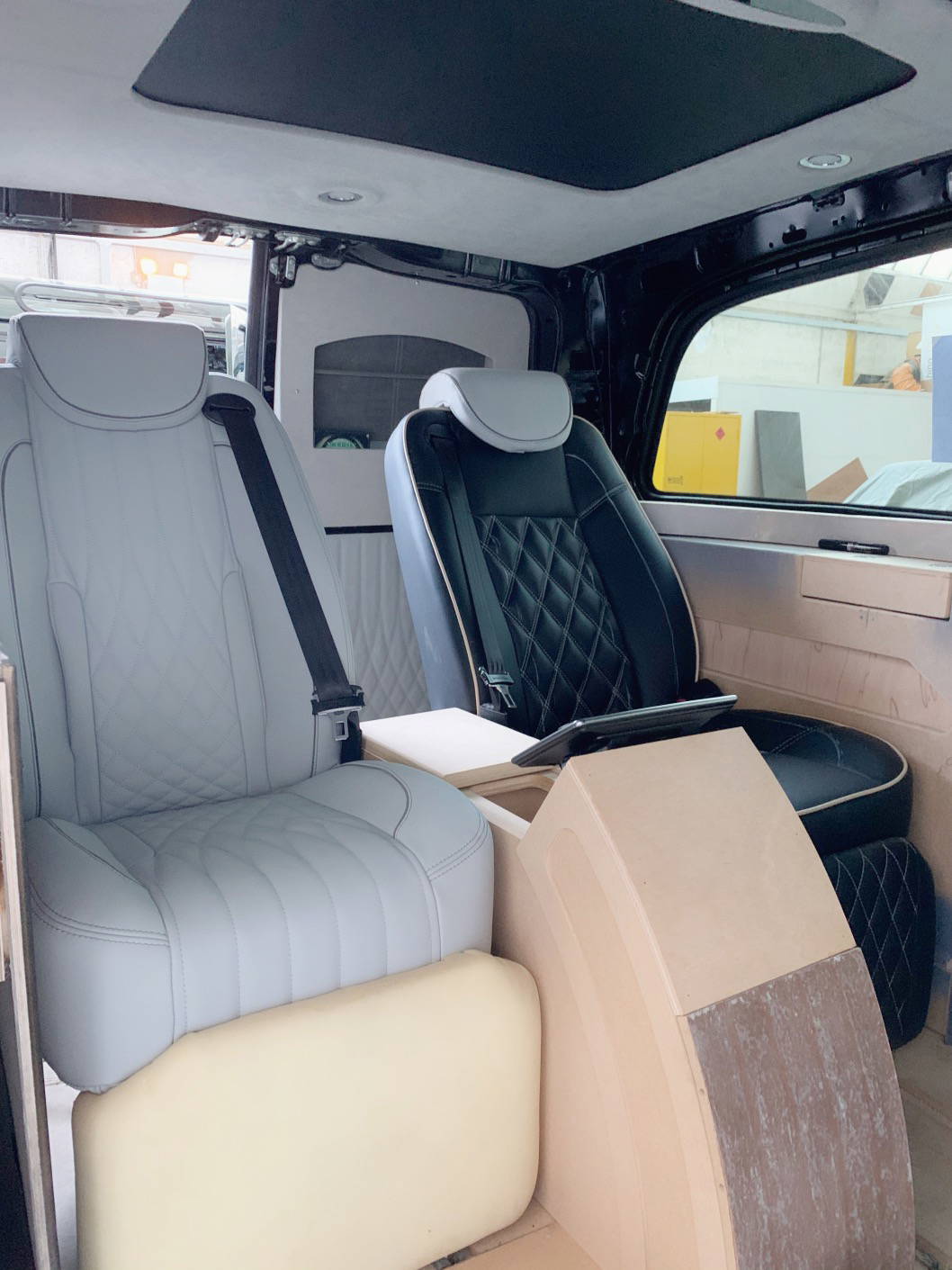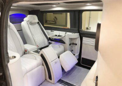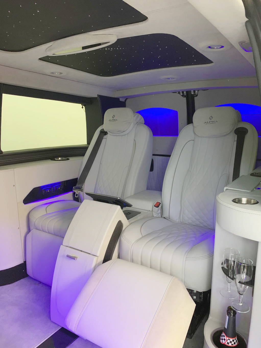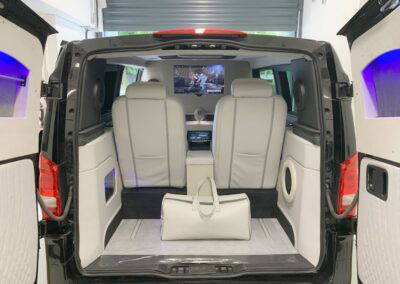 Having enjoyed years of converting vans into party vehicles in Australia, Brett was ready for another challenge and decided to transform a Mercedes Vito into a luxury VIP vehicle. Choosing a Mercedes Vito panel van as the base vehicle, literally everything inside needed to be custom fabricated. Everything was done in house utilising Brett’s skills in woodwork, fibreglassing, metal work and trimming to create everything from scratch.