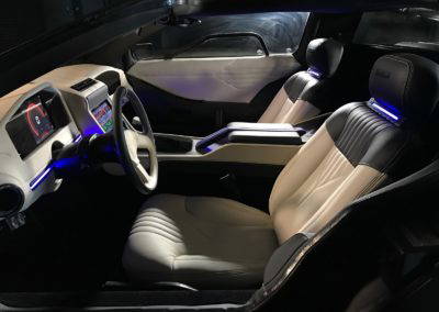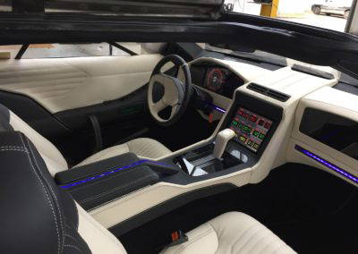 We were asked to bring the iconic DeLorean ‘Back to the Future’ for National Geographic Channel’s Supercar Megabuild show. Along with the show’s presenter, Boyzone’s Shane Lynch, we completely redesigned and transformed the interior. The seats and doors were trimmed in