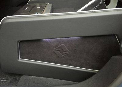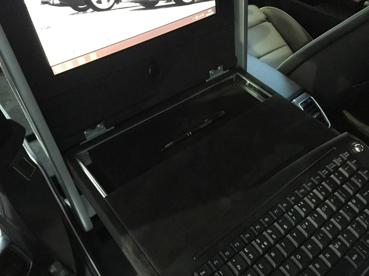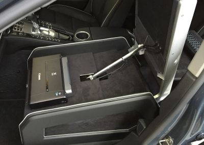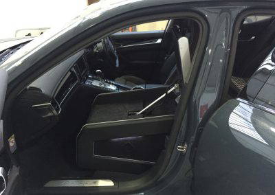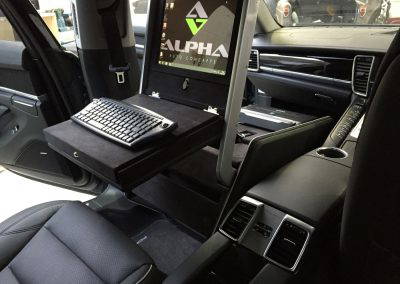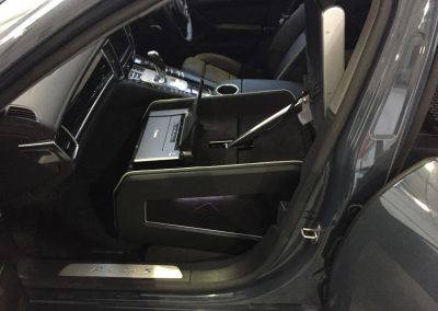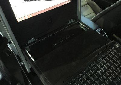 The makers of National Geographic Channel’s Supercar Megabuild approached us to create a mobile office inside a Porsche Panamera. We designed and built a pod, which sat in place of the passenger seat to create a workspace for a passenger in the rear. The pod was trimmed in leather to match the existing interior and was equipped with full mobile office facilities including a Windows PC with 15″ monitor, 4G Wifi, wireless keyboard with